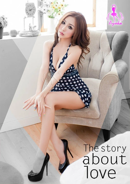 Description:Pert polka dot! Sexy deep-V neckline style with sequin waist band. Immovable halter strap.?