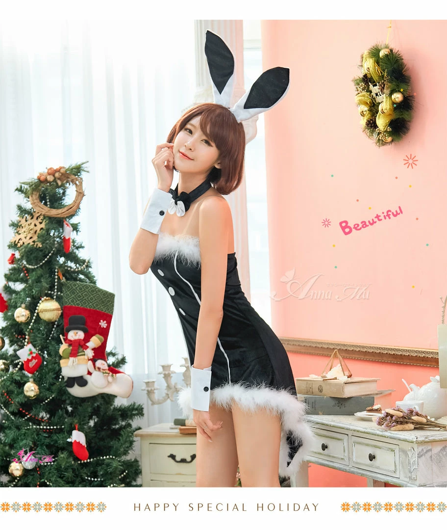 Anna Mu LINGERIECATS Black And White Bow Knots Lace Halter 4pcs Maid Costume Set Lingerie Set