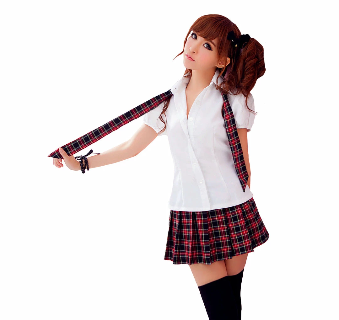 Top length*:55cm/Shoulder Breath*:38cm/Under Bust*:44cm/Sleeve length*:16cm Skirt length*:32cm/Waist*:37cm(The side hidden zipper design ) With matching Pleated skirt With matching long tie* Lay-Flat Measurement .