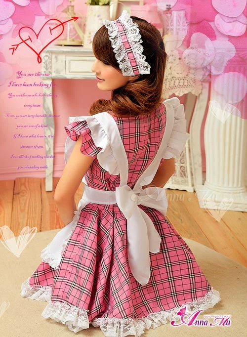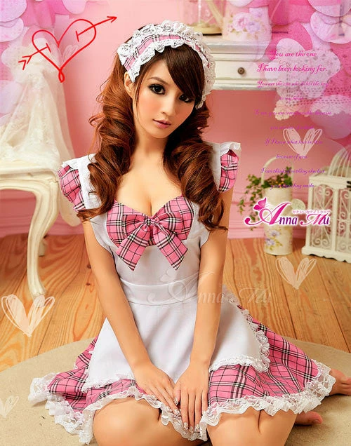 Exclusively sold by Lingeriecats. Description?GPlaid maid costume features lovely centered jumbo bow and puff skirt. Hidden side zipper. Comes with French apron and lacy maid headband. It’s perfect for your party, you’ll definitely be the most charming one among all