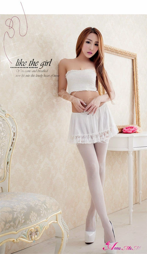 Skirt Length : 24cm. With matching draw string thong, matching, detachable and adjustable garter belts, with matching net stockings. *Lay-Flat Measurement