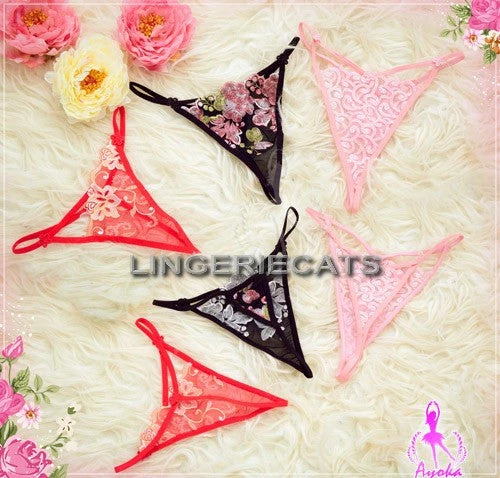 ◆Description:Stylish and delicate embroidery design! Crotchless G-string set makes you feel sexy and confident. Perfect fancy look!