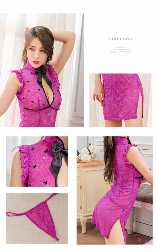 ◆Content:One set of 2 PCS pack including the Chinese cheongsam costume lingerie & G-string.