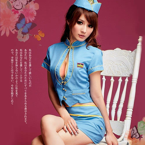 Exclusively sold by Lingeriecats. Description: Gorgeous air-hostess outfit cosplay costume set.