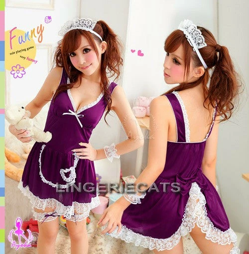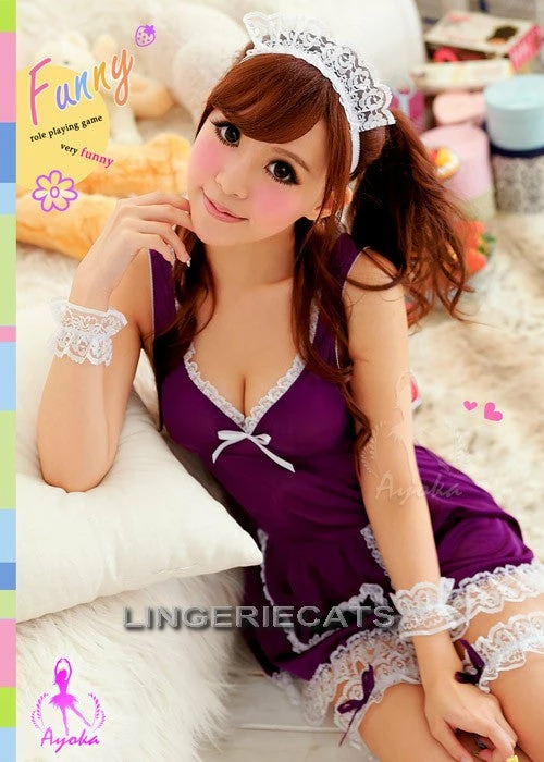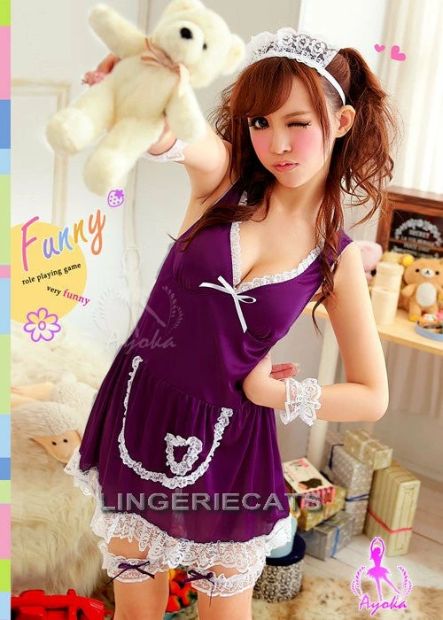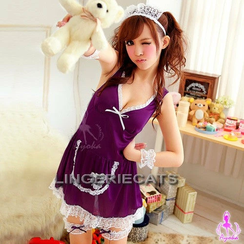 ◆Description:Be my master and let me serve you!Sexy open back dress trimmed with lace and bow accent. Lovely design attached apron in the front. Come with G-string, headband, two pieces of lace cuffs and two pieces of leg garters.