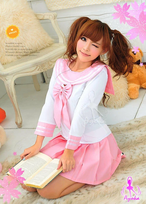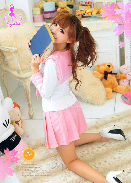 ◆Description:Lovely pink school costume featuring removable sailor collar shirt, comes with a pink bow accent. Pleated skirt with hidden zipper at a side