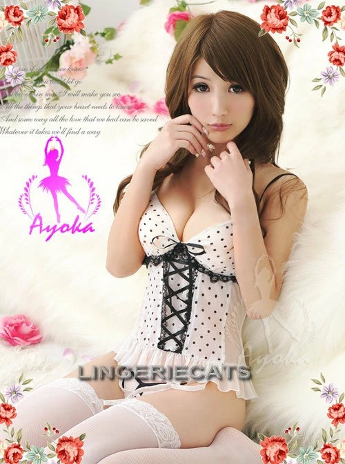 ◆Content:One sexy set of 4 PCS pack including the corset, designed G-string, suspender belts & sheer lace top stockings.