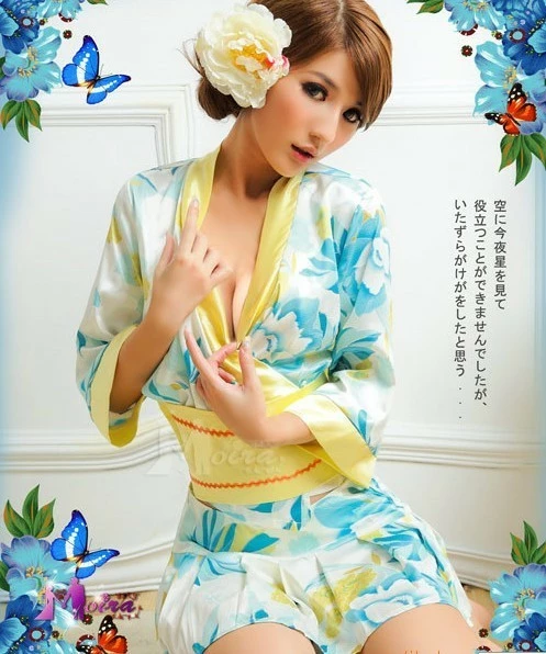 Anna Mu LINGERIECATS Black Base Saphire Luster Edge Japanese Kimono Costume Set Lingerie Set
