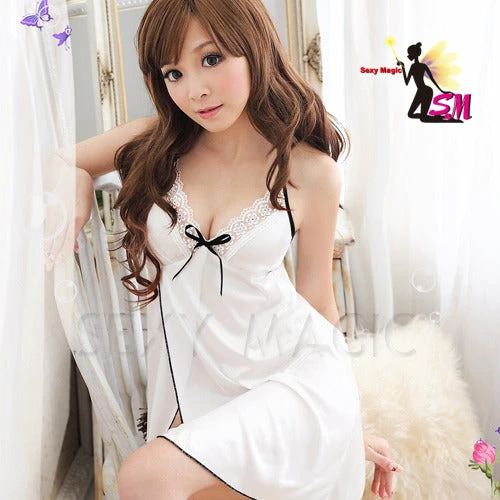 Wu Ya Elegant White V-neck See-through Lingerie Babydoll (Plus Size) Babydoll Lingerie